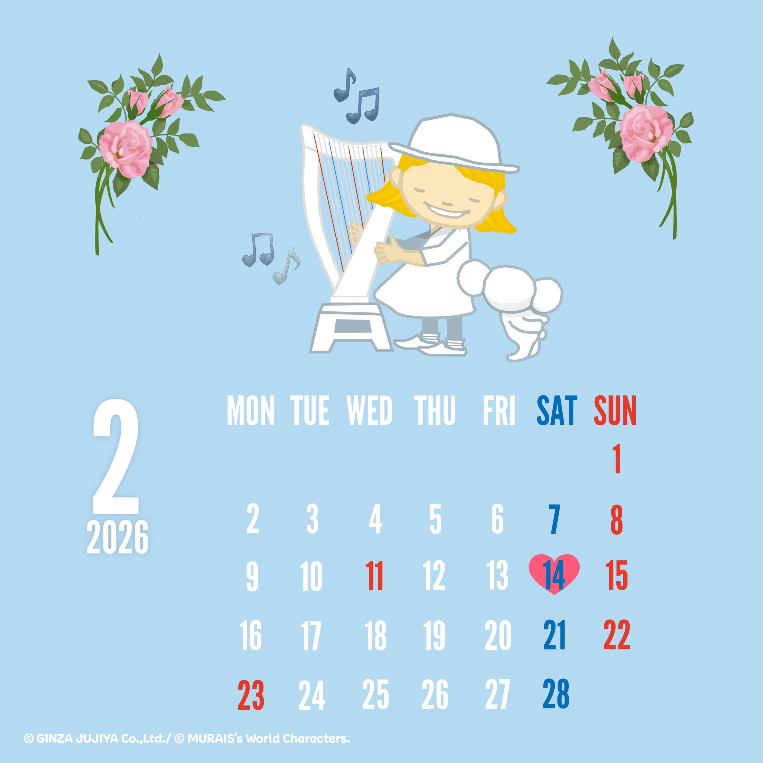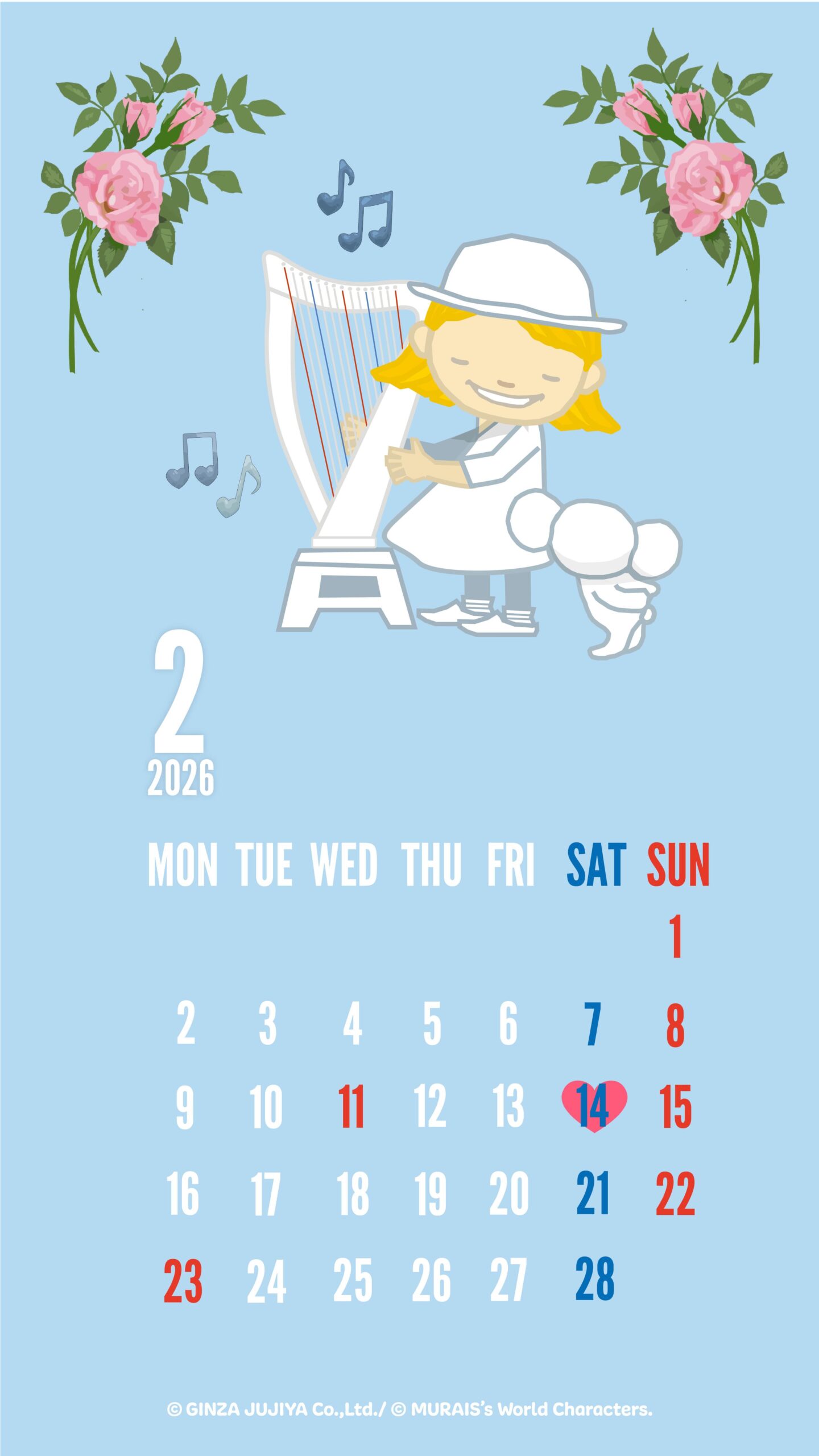 ■2026年2月 クリスハープオリジナルカレンダー壁紙